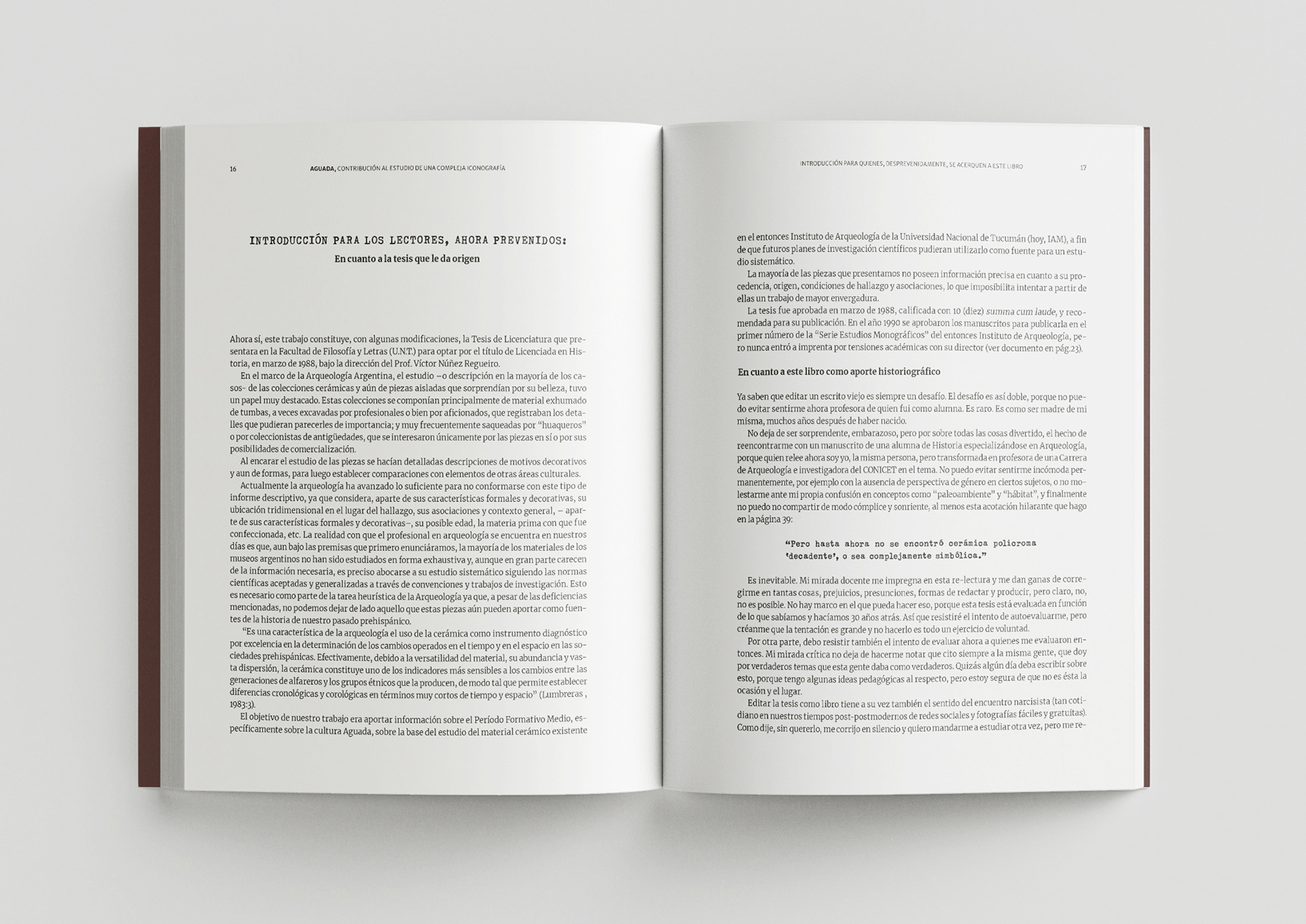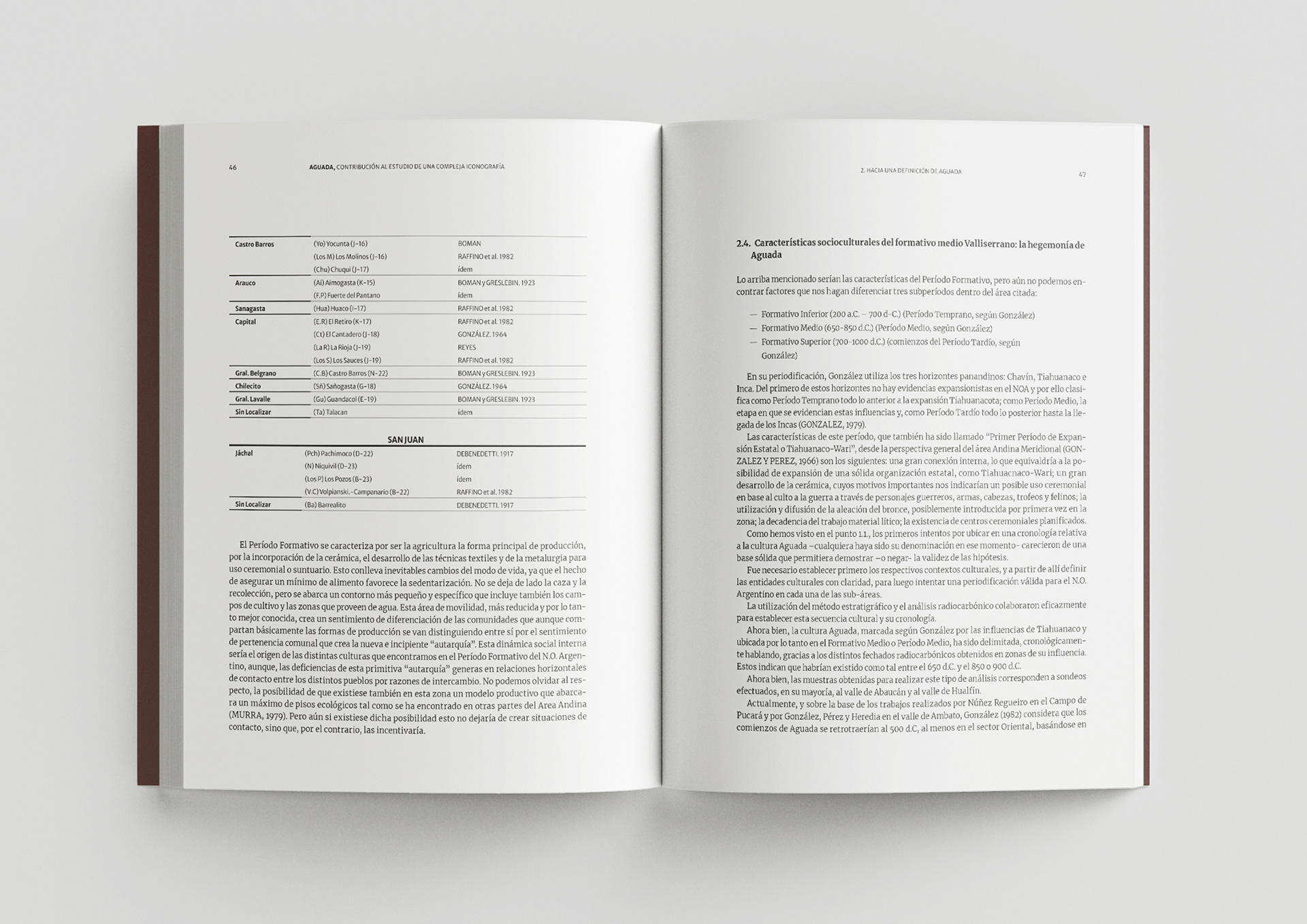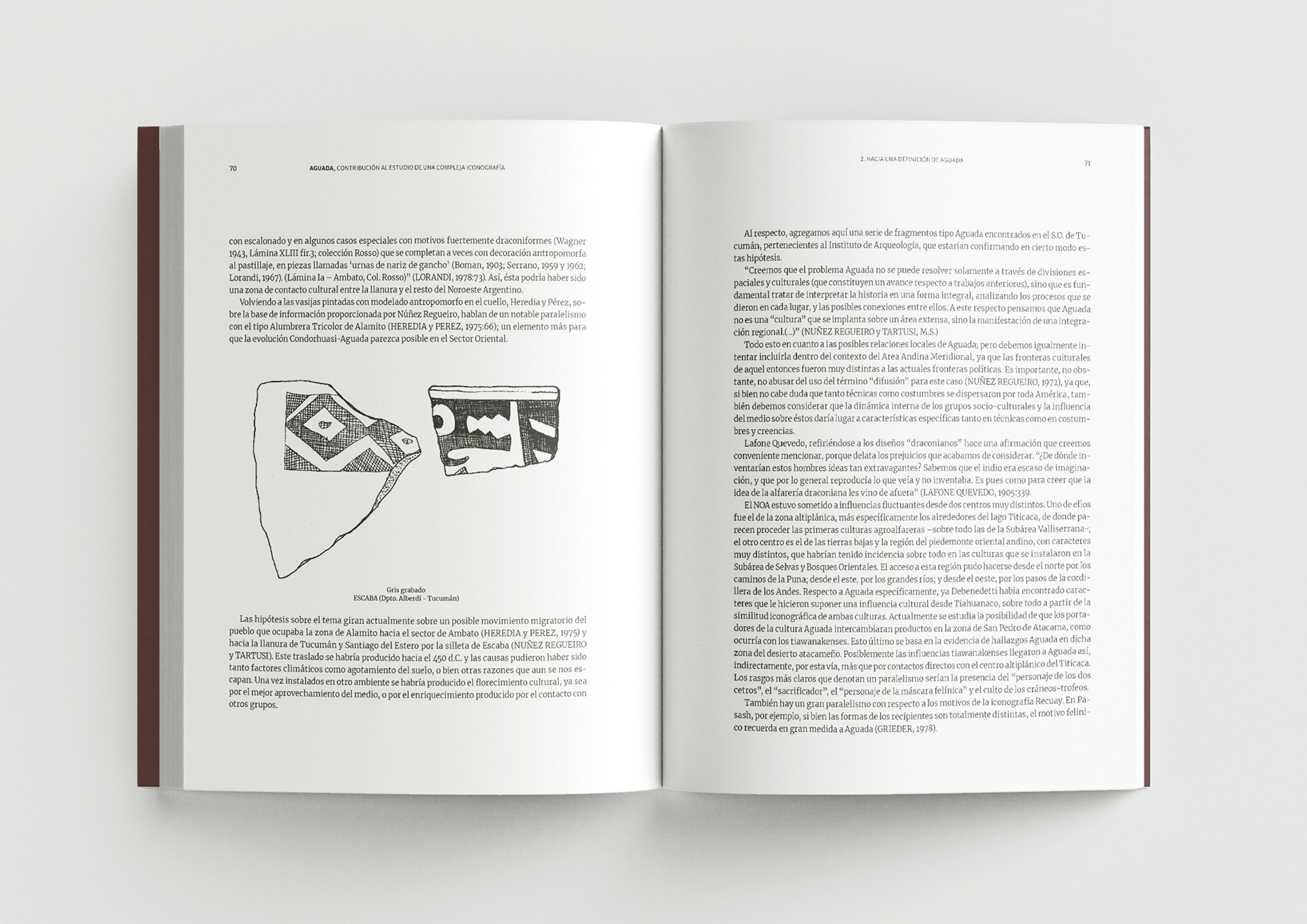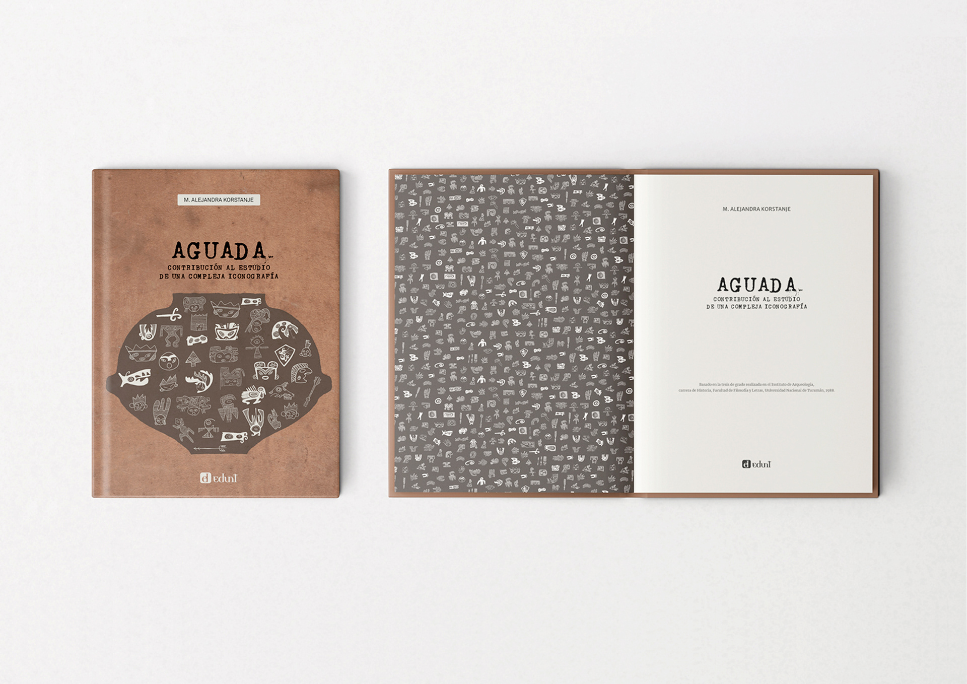 Este proyecto es un libro de arqueología sobre la cultura precolombina Aguada, perteneciente al norte argentino. Está editado por la Universidad Nacional de Tucumán. La edición incluyó la digitalización de más de cien láminas y un complejo trabajo de tablas técnicas. Se utilizó barniz selectivo para resaltar elementos de la portada.