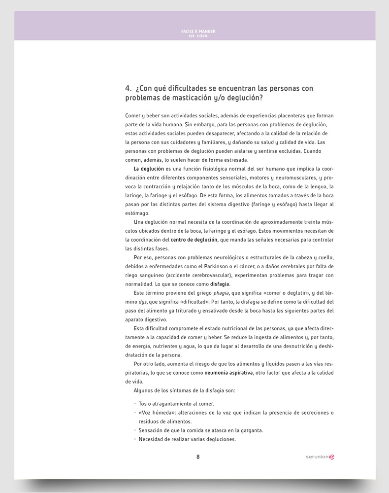 Guía de alimentacion y recetas de platos fáciles de deglutir Se hicieron dos modelos como guías digitales interactivas en PDF.