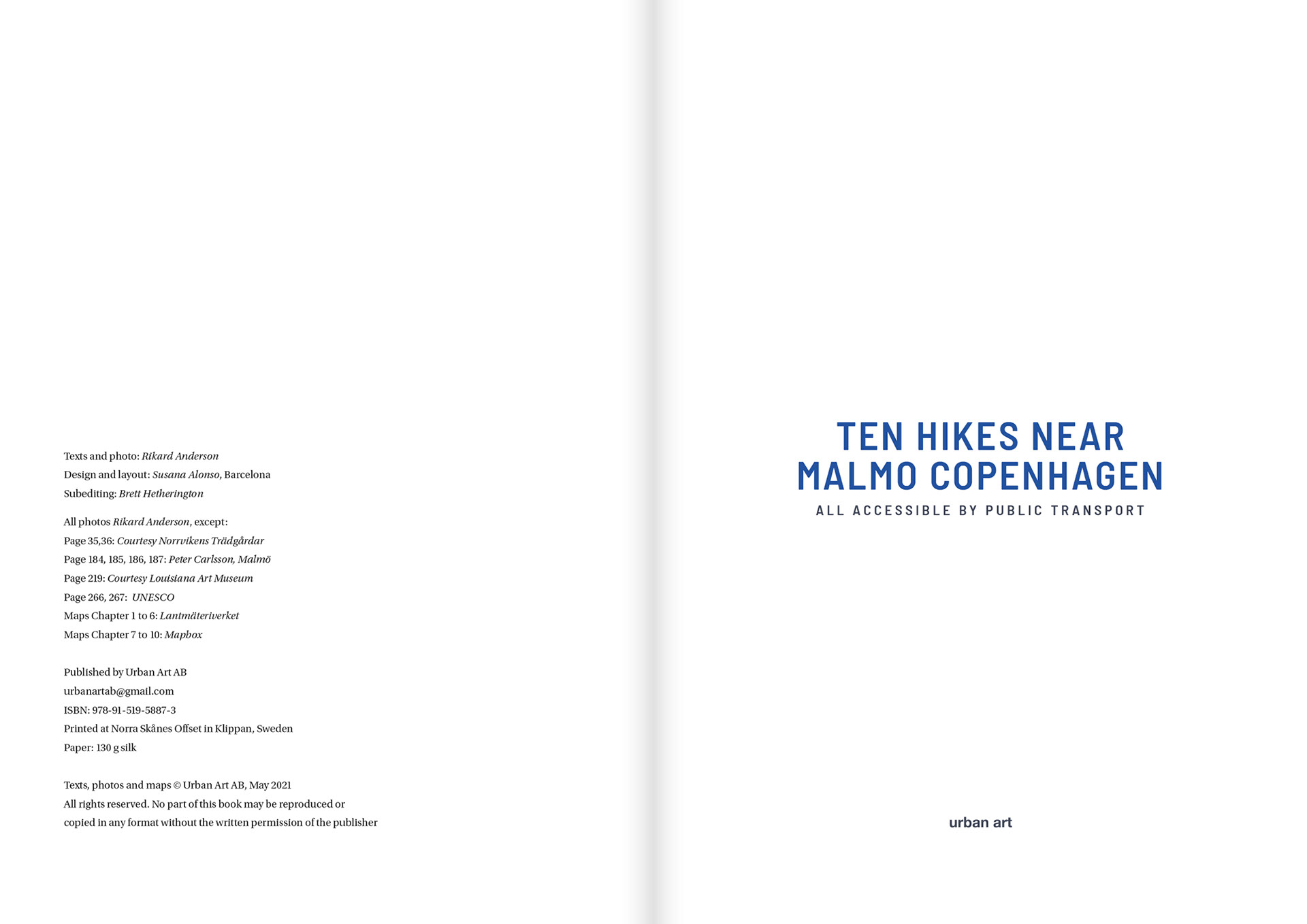 Proyecto editorial de senderismo para la editorial Urban Art, Suecia. Creación de portada, maquetación, edición de fotos y artes finales.