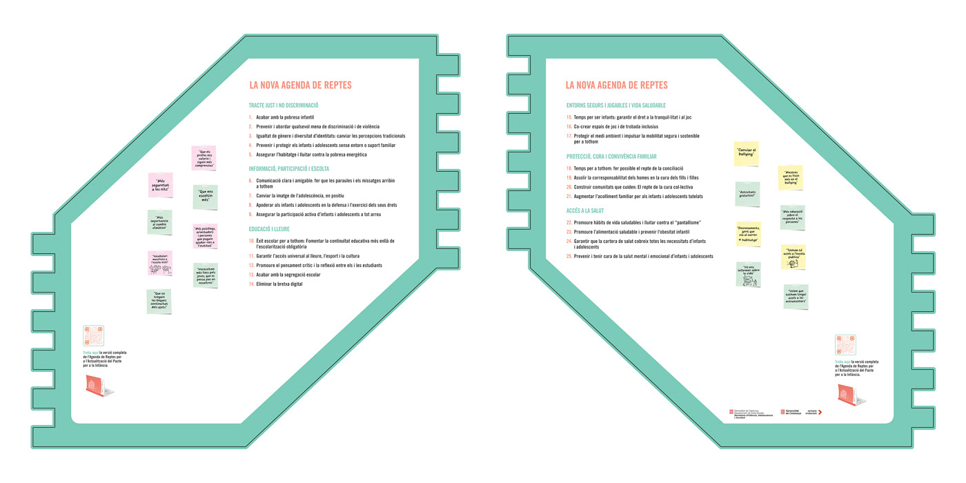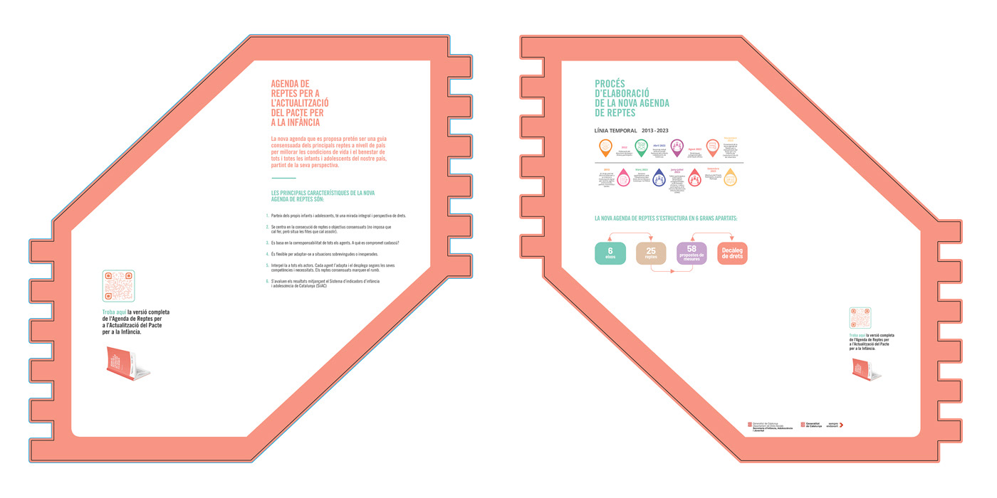 Proyecto para la Fundació Dgaia realizado conjuntamente con el fotógrafo Francesco Caiazza que consistió en el desarrollo y síntesis visual del trabajo anual de actualización del Pacto por la Infancia. Se realizaron dos informes en formato libro y el desarrollo visual de una exposición itinerante, para lo cual se crearon paneles informativos modulares de fácil desplazamiento y armado.